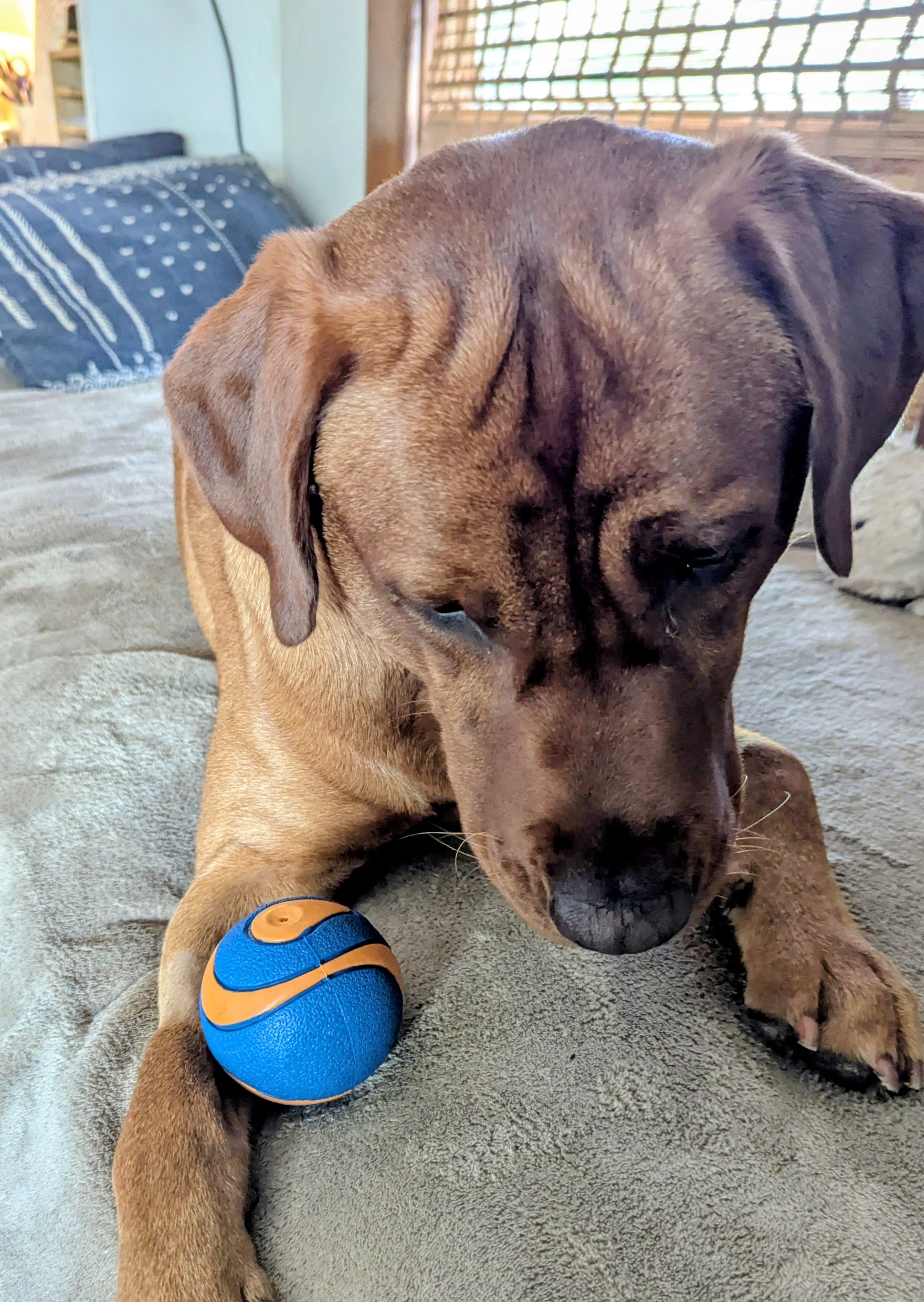 As I write this, Doug, our puppy, is playing with a squeaky ball. He is jumping up on the daybed, making the ball squeak, dropping it onto the floor, chasing it, and repeating. There is a feeling of pressure at the top of my chest and a thought that all of this is annoying, distracting, and cute.